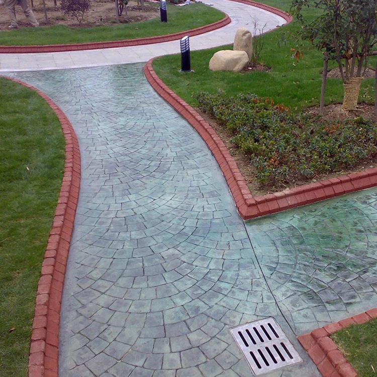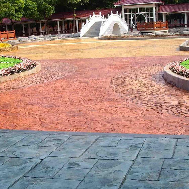 艺术压模地坪路面是集天然石材的富贵、华丽、自然、大气、整体感和普通彩色路面砖颜色鲜亮的特点于一体的适用性很强的艺术型地面,但价格仅为同等质量的天然石材的1/4甚至更低。由于其良好的性能特点,施工成本低、色彩美观、质地坚硬、耐压耐磨效果好,高标准的施工技术致地坪的使用寿命可长达20年之久,期间只要混凝土基层不出现破损就无需维修。