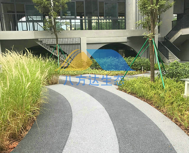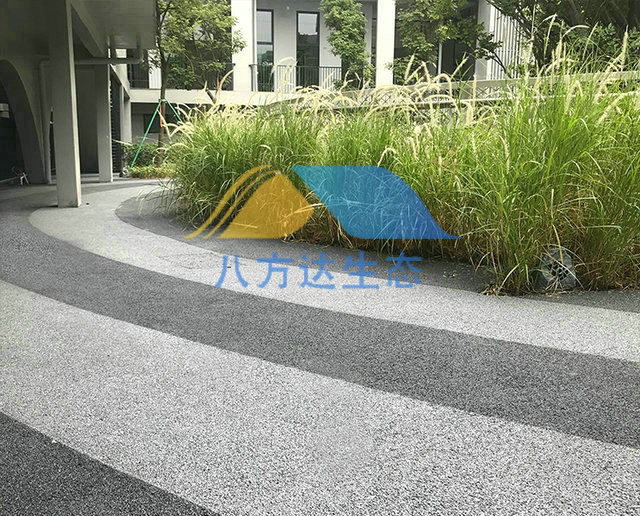 3、透水地坪铺装,拥有很好的透水性能,以270升/平米/分钟的透水速度,不仅能够迅速使堆积在地表的与属于渗入地下,还能缓解地下水位急剧下降等一些城市生态环境问题;
