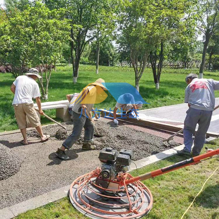 除此之外,冷铺型彩色沥青路面可以根据设计师的不同需求做成多种颜色,其本身具有良好的透水性能,能够使路面上的积水快速渗透到地下土壤中。对行人的出行提供了方便,且铺装在公园里面,彩色透水混凝土路面能够将湿润土壤,从而给周边植物补充水分,增加土壤的透气性。