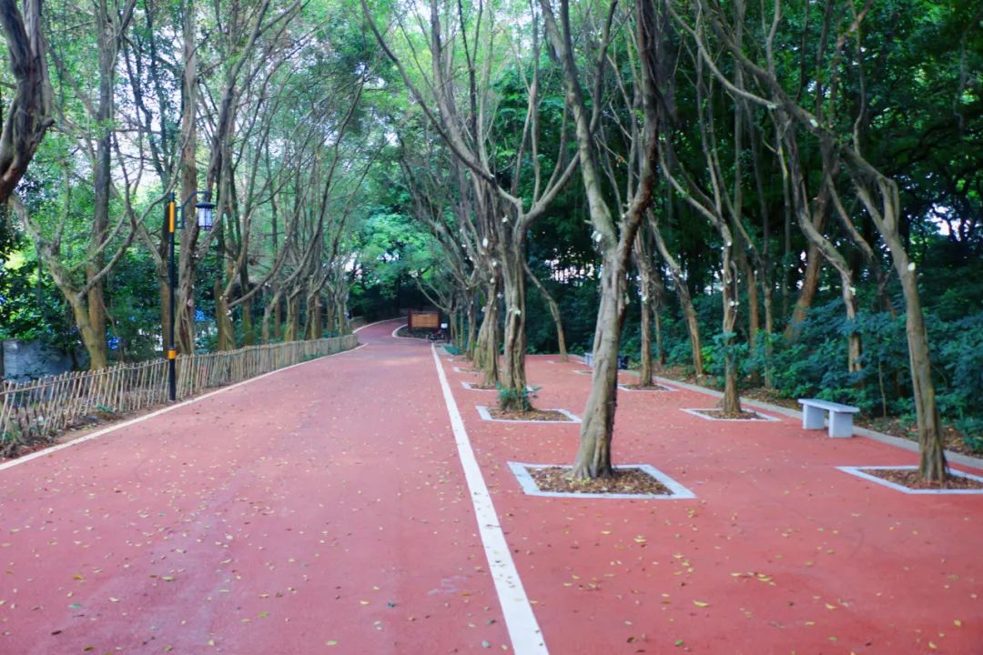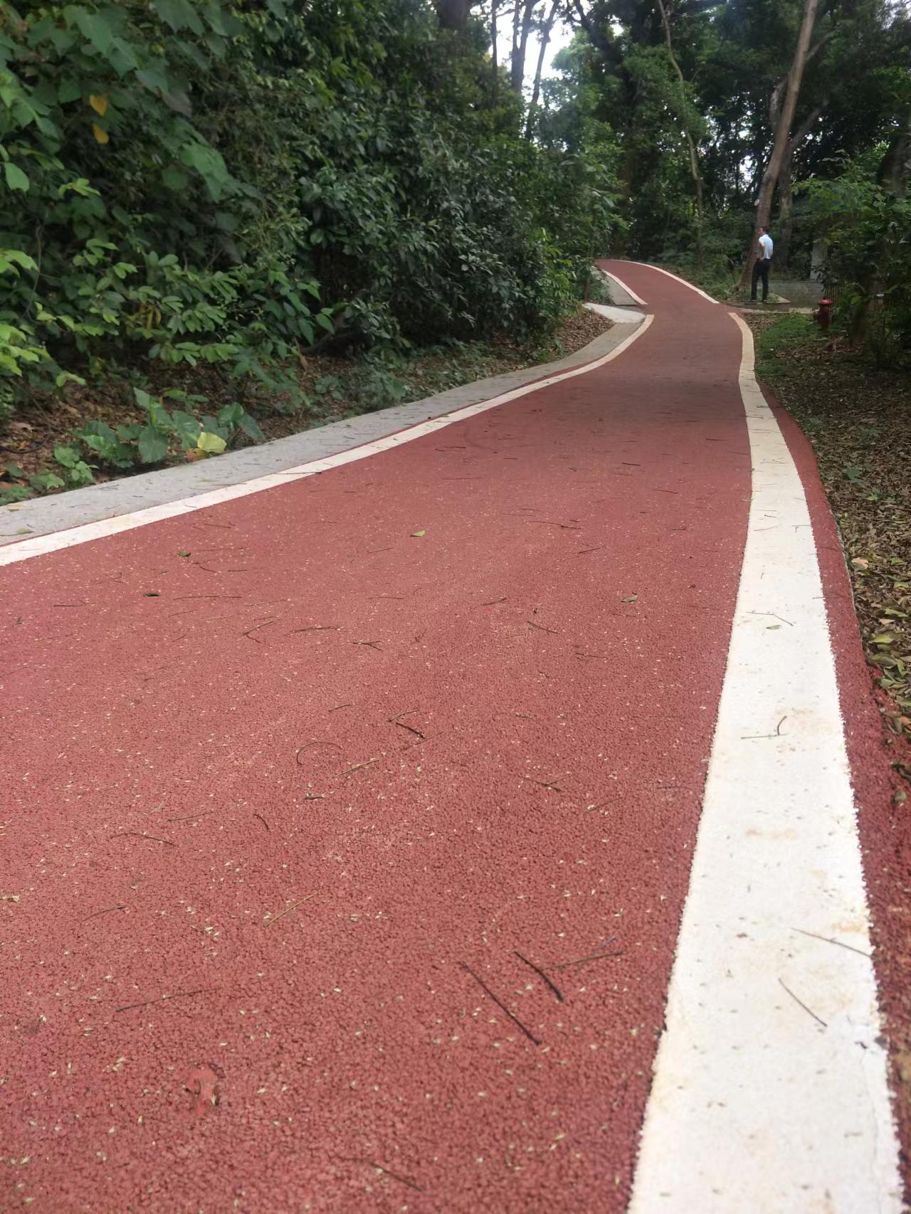 “以前这里是一片荒山野塘,每逢下雨就一片泥泞,周边的路上也总是积水,出行非常不方便。”家住誉山国际小区的居民梁伯说。在八方达历时3个月的打造下,终于可以投入使用,全程(除楼梯部份外)全程以透水混凝土铺装材料打造,具有高透水性、颜色艳丽、防滑耐磨、质感舒适,结合山中植被覆盖、绿树成荫、空气清新,已成为了附近居民周末游玩放松打卡的好去处。