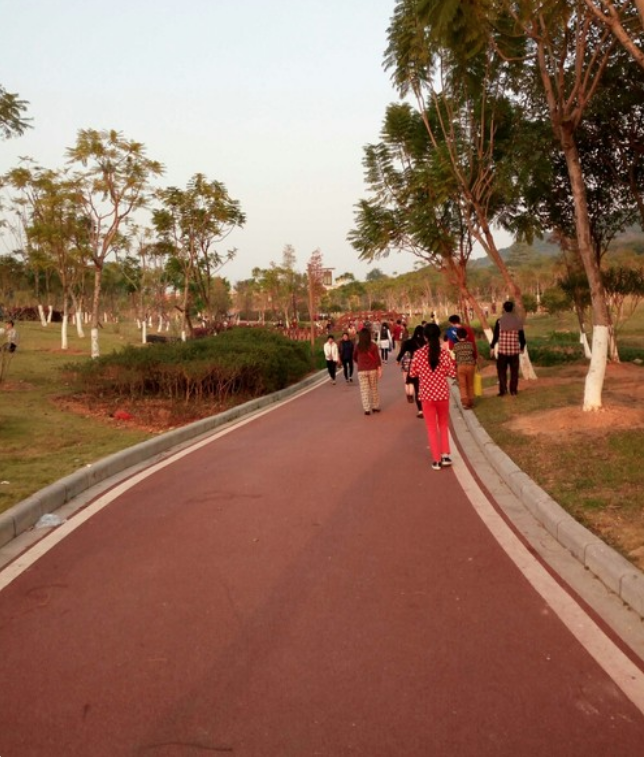 增城新塘万田生态公园,是新塘附近较大的公园之一吧!公园里绿植覆盖和空气清新,适合亲子游玩放松,周末好多人来郊游,路面也有一些小摊,主要是景色很好。全程路面平坦,都是透水混凝土材质的,路面颜色很喜欢,质感舒服,据说还是透水材质呢。我们是透水混凝土厂家,有需要可以咨询主页报价。