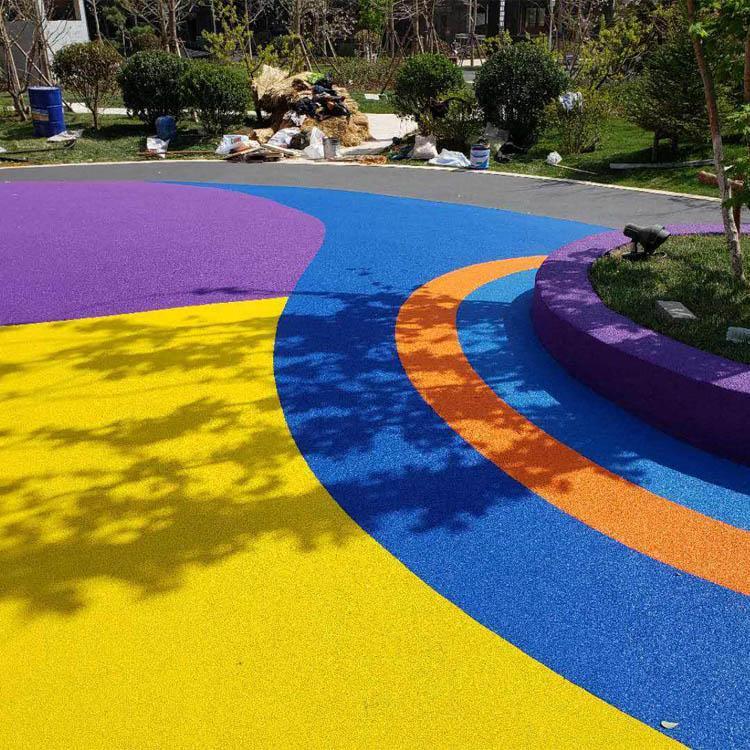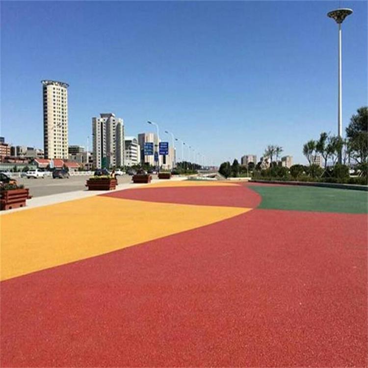广场透水地坪路面三:透水胶粘石:透水胶粘石地面是由改性高分子树脂为胶结材料,将天然彩石、玻璃、水晶石、人造再生骨料等石子粘接在一起,铺设在混凝土、透水混凝土、沥青或级配砂石基层上的生态景观地面铺设材料,具有高效透水、自然美观、经久耐用等特点。常用于透水性景观道路、车型或人行道、公园和广场等场所,也可应用到室内场所。